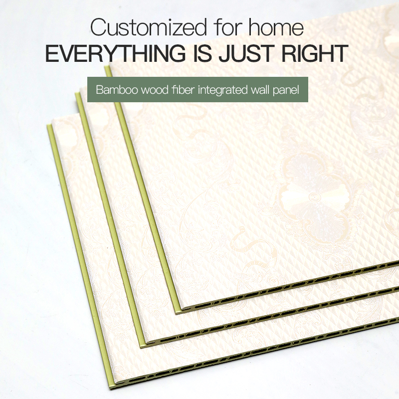 Bamboo and wood fiber integrated board is a kind of nanometer material made of bamboo and wood fiber, crystal powder and pvc. Its polymer film will be placed in vacuum through a process, and then heated by hot pressing. The method of one-time pressing.