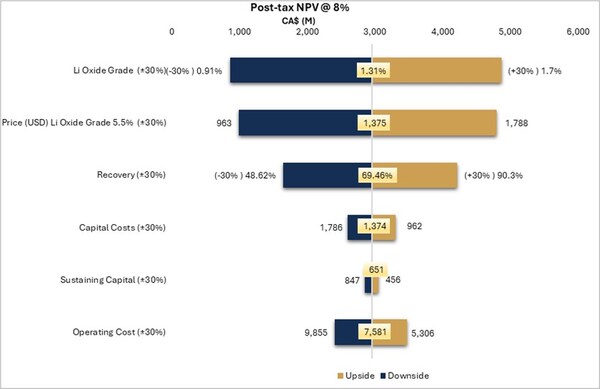 The PEA uses a long-term weighted average spodumene price assumption of US$1,375 (SC5.5,FOB Bécancour basis) per tonne. This assumed price is supported by recent market price forecasts from independent reporting agencies,banking commodities analyst reports and company disclosures and recently published technical reports,which indicate spodumene prices generally cluster around US$1,300–US$1,500 per tonne for 5.5% spodumene concentrate. Therefore,a price assumption for the PEA within this range is considered to fairly represent foreseeable longer-run market conditions applicable to the project development scenario,as compared to current spot pricing of Spodumene Concentrate US$760/t (SC6,FOB Australia basis -15/08/24).