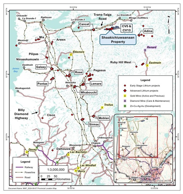 "The Shaakichiuwaanaan Project is potentially well positioned to anchor the North American lithium supply chain,meeting demand for decades to come,in the process targeting significant returns for all our stakeholders while maintaining a strong emphasis on sustainability and limited environmental impact," Mr. Brinsden added.