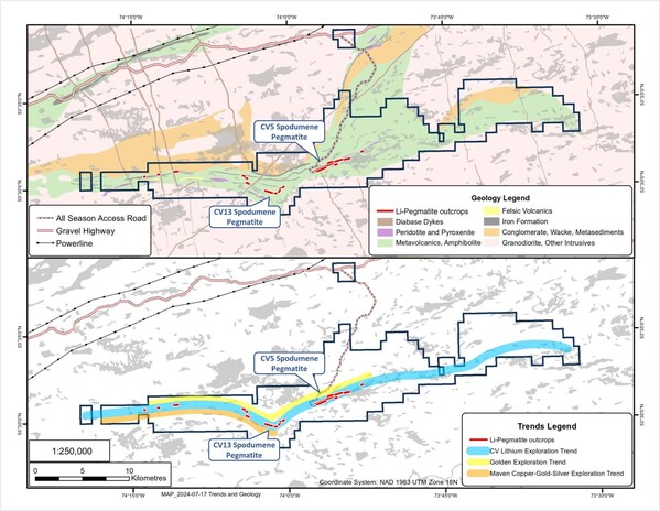 Shaakichiuwaanaan (CV5 & CV13) Mineral Resource Estimate (80.1 Mt at 1.44% Li2O and 163 ppm Ta2O5Indicated,and 62.5 Mt at 1.31% Li2O and 147 ppm Ta2O5ppm Inferred) is reported at a cut-off grade of 0.40% Li2O (open pit),0.60% Li2O (underground CV5),and 0.80% Li2O (underground CV13) with an Effective Date of June 27,2024 (through drill hole CV24-526). Mineral Resources are not Mineral Reserves as they do not have demonstrated economic viability.