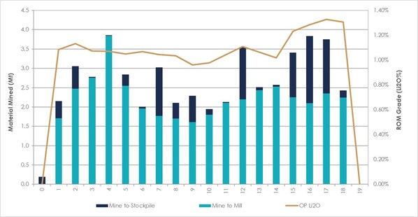 The Company's PEA mining strategy has adopted both open-pit and underground mining methods and was designed to gain earlier underground access to the high-grade Nova Zone in the northeast area of the CV5 Pegmatite than would be possible with just open pit mining. This approach has the potential to reduce the Project's operational footprint,potentially simplifying the approval process by decreasing the open pits strip ratio and therefore minimizing waste deposition at surface. The open pit strip ratio during the proposed PEA LOM scenario is estimated to be a low 3.7:1.
