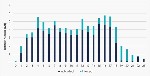 EBITDA is a non-IFRS financial measure which is comprised of net income or loss from operations before income taxes,finance expense – net,depreciation and amortization. This annual EBITDA is calculated considering the period of full production (i.e.,Years 4 to 18). Refer to "Non-IFRS and other financial measures" for further information on these measures.