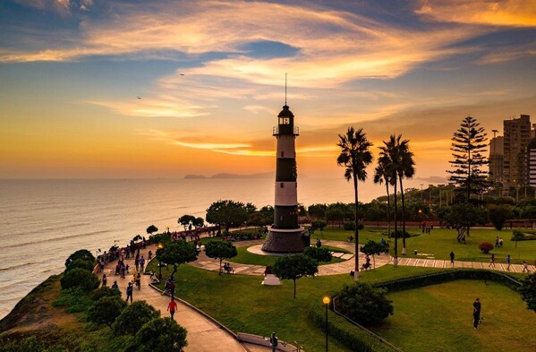 Moving into the modern stage,the district of Miraflores stands out with its robust hotel offerings,entertainment options,and the Costa Verde boardwalk. The small parks along the boardwalk are a must-see during your visit,whether on a walking or biking tour. Some of the best views of the boardwalk can be enjoyed from the area's taller hotels,with the JW Marriott Lima being one of the most iconic. From here,you can see the boardwalk,the sea,and the paragliders,creating a pleasant landscape. Likewise,the Insumo restaurant on the terrace of the AC Lima Miraflores also offers excellent views. For those who prefer a walk in a natural setting,the Fairfield Lima and the Courtyard Lima are very close to parks filled with native vegetation where locals and tourists go to connect with nature.