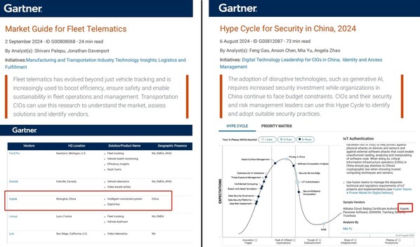 SHANGHAI,Sept. 20,2024 -- INGEEK,a leading provider of innovative intelligent connected vehicle (ICV) technologies,and its Intelligent Connected System (ICS) and Automotive Digital Key have been featured in Gartner's Market Guide for Fleet Telematics. This recognition highlights INGEEK's capability to boost efficiency,ensure safety,and enable sustainability in fleet operations and management.