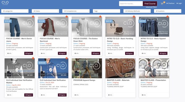NEW YORK,Oct. 23,2024 -- CLO Virtual Fashion Inc.,a global leader in fashion technology,is proud to announce the launch of CLO Academy,the company's official online learning platform designed to ensure that students master CLO software the right way. CLO Academy provides a centralized resource for individuals to build expertise in digital apparel design,with guidance from seasoned CLO instructors who have extensive experience training industry professionals.