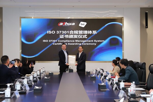 HANGZHOU,China,Dec. 30,2024 -- Dahua Technology,a world-leading video-centric AIoT solution and service provider,has officially obtained the ISO 37301:2021 Compliance Management System Certification from British Standards Institution (BSI). This milestone makes Dahua the first Chinese company in the video-centric AIoT industry to achieve this certification.