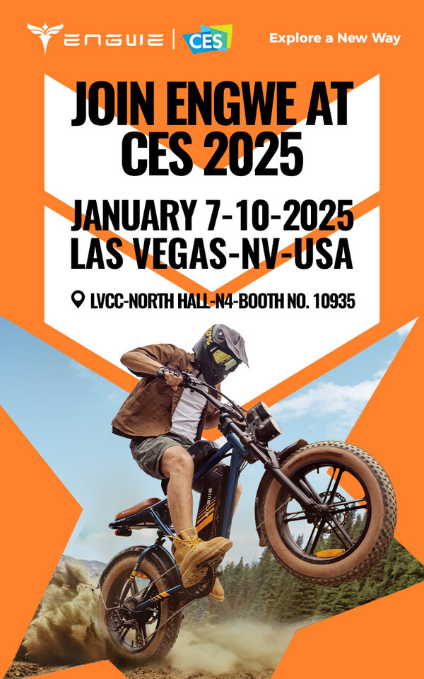 LOS ANGELES,Jan. 6,2025 -- ENGWE,a leader in fat-tire electric bicycles,is excited to showcase its latest productsat CES 2025,the world's premier technology event. From January 7 to January 10,attendees can visit ENGWE's booth (North Hall-N4,Booth No. 10935) to experience the debut of its all-new commuter product line,ENGWE Mapfour.