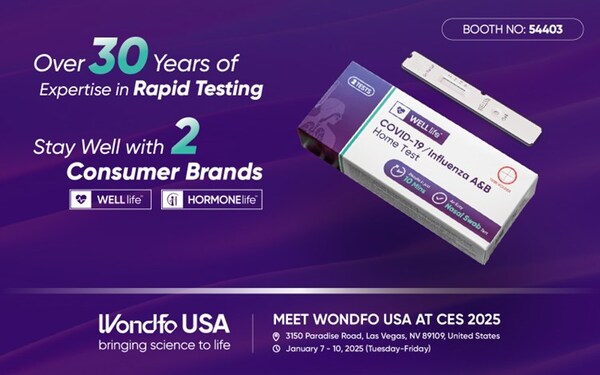 LAS VEGAS,Jan. 9,2025 -- Wondfo USA Co.,Ltd. ("Wondfo" or "Company"),a leading brand in medical diagnostic testing solutions and technologies,showcased its commitment to the North American market by presenting a diverse range of products at CES 2025. The Wondfo USA WELLlife and Wondfo USA HORMONElife brands offer reliable testing in several areas to keep everyone informed about their health.