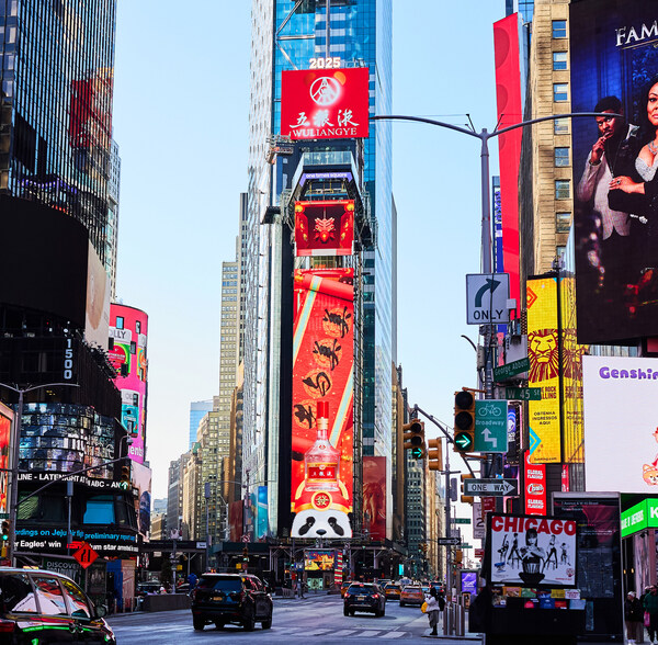 BEIJING,Feb. 5,2025 -- China's leadingbaijiu maker Wuliangye sent its Spring Festival greetings to the world through a 3D advertisement released on January 27 at the Times Square,New York.