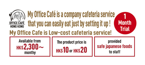 "My Office Cafe" allows companies to support their workers and create a better working environment. My Office Cafe" is a service in which a subscribing company pays a service usage fee (from HK$2,300 per month) to allow its employees to enjoy inexpensive (HK$10 or HK$20) and tasty food easily and quickly at a low price. We lend a freezer and microwave oven,and keep a certain number of packs of our products available in the freezer every month. Employees can eat them whenever they like by purchasing the products of their choice from the freezer and heating them up themselves.