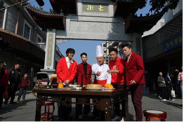 The interactive magic show "Welcome toYunfu" presents a table of family reunion feast with Yunfu's specialty agricultural products. The trio,consisting of Song Jiaqi from Guangdong,Hong Kong comedy star Ruan Zhaoxiang,and popular singer Xu Zhaohao,has sparked waves of laughter among the audience.