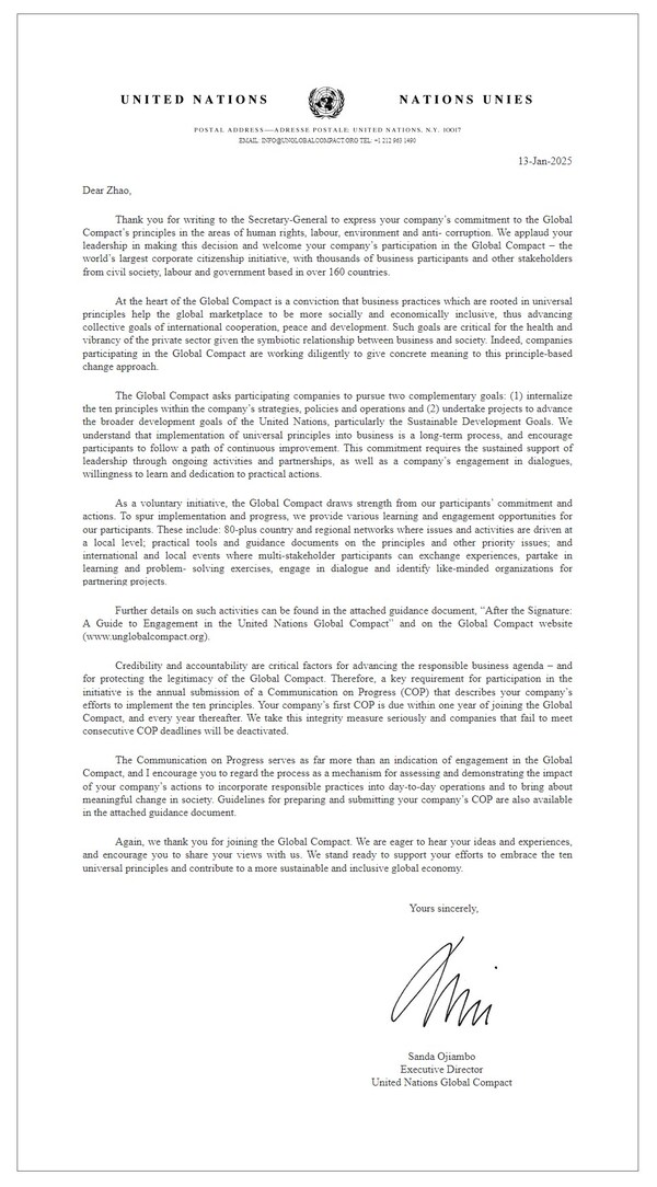 PARSIPPANY,N.J.,Jan. 27,2025 -- Bloomage,a global leader in hyaluronic acid and other bioactive innovations,officially joined the United Nations Global Compact (UNGC). This commitment further reflects Bloomage's on-going efforts in global sustainable development.