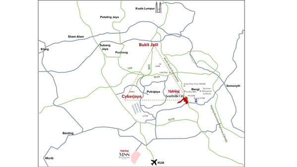 Mah Sing DC Hub@Southville City forms a strategic triangle of data centre hubs with Cyberjaya and Bukit Jalil,both approximately 20km away