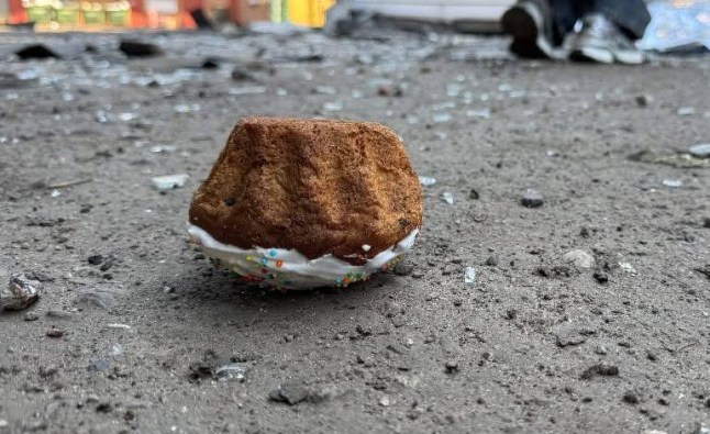 The head of Sumy district state administration Mykhailo Melnyk said in an update on Facebook,‘Around 5 am,the enemy struck a UAV type ‘Shahed’ on the pastry shop [in Sumy]. Damaged production of Easter cakes.