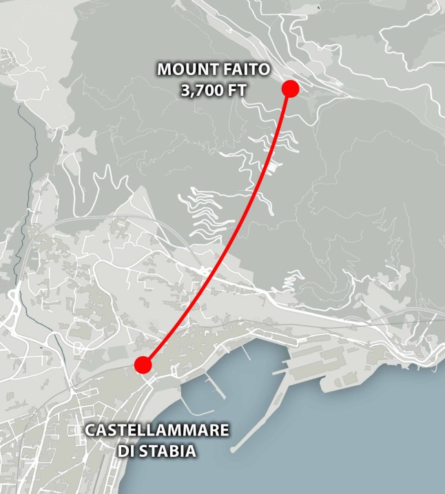 It was just 20 seconds from the top of Mount Faito in Naples when it plunged 100ft into a ravine on Thursday.