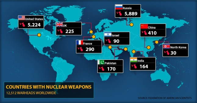 The current number of warheads per nuclear armed nation (Picture: Metro.co.uk)