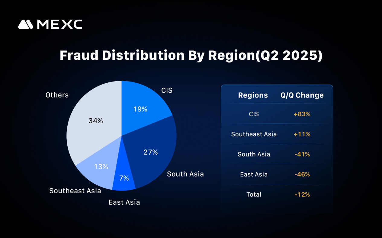 MEXC concentrated its risk mitigation efforts on historically vulnerable regions such as South Asia and Southeast Asia, deploying AI-powered monitoring models, activating regional security response teams, and scaling up user education initiatives.
