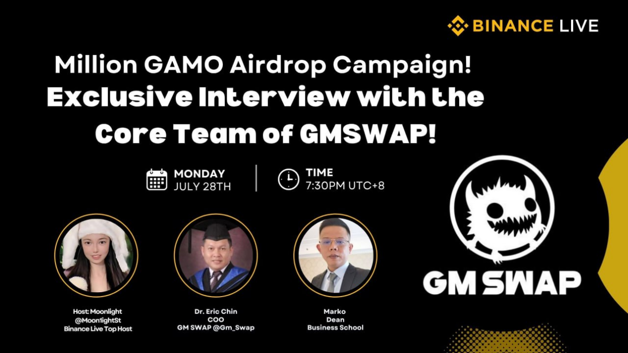To celebrate the livestream and thank the community, GMSWAP has launched an official airdrop campaign: