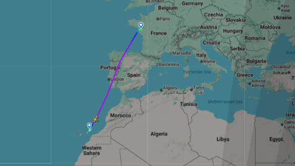 The route of the plane from Nantes to Lanzarote,Canary Islands (Picture: Flightradar24)